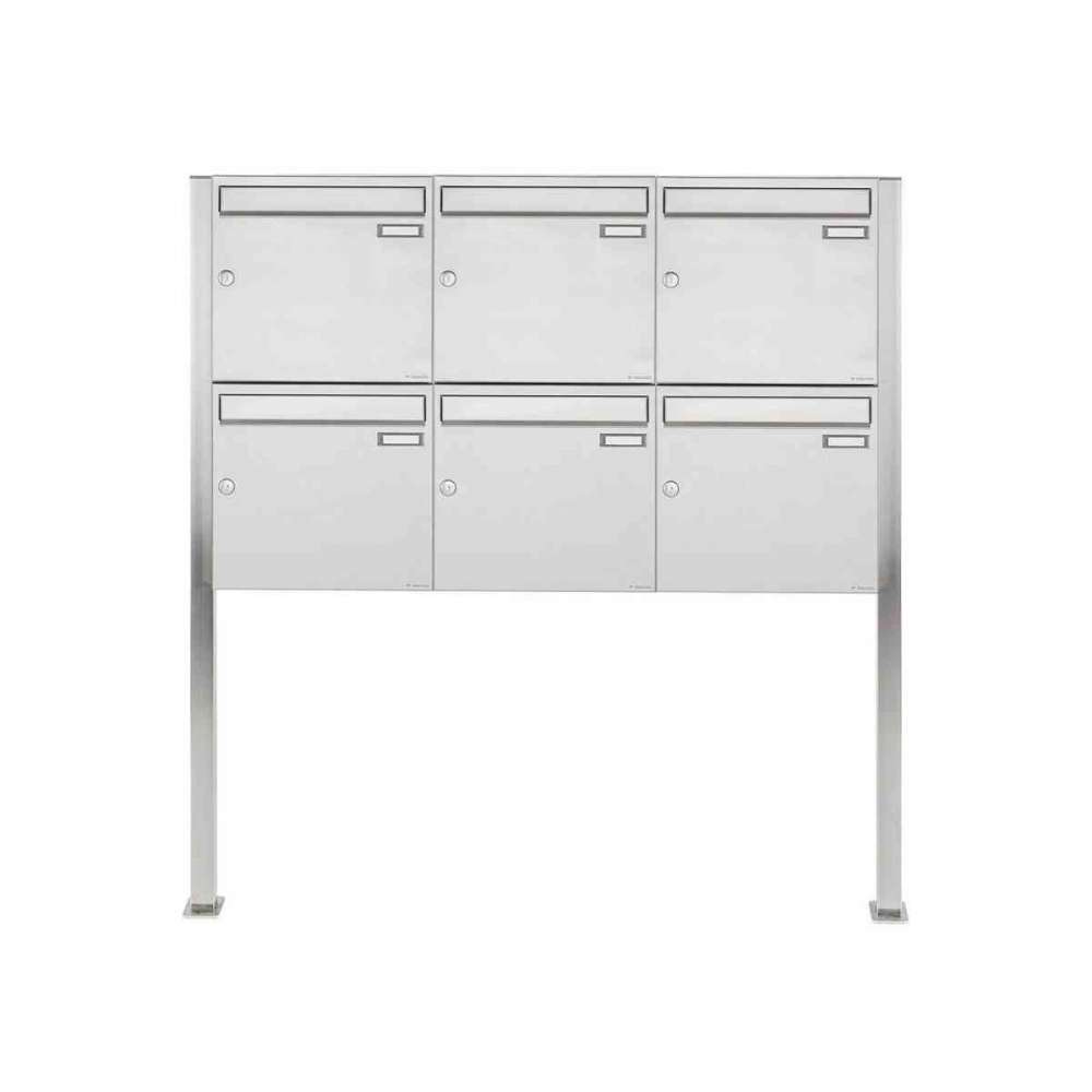 Briefkasten Manufaktur Basic | 6er 2x3 Edelstahl Standbriefkasten Design BASIC 384 ST-Q 100mm Tiefe