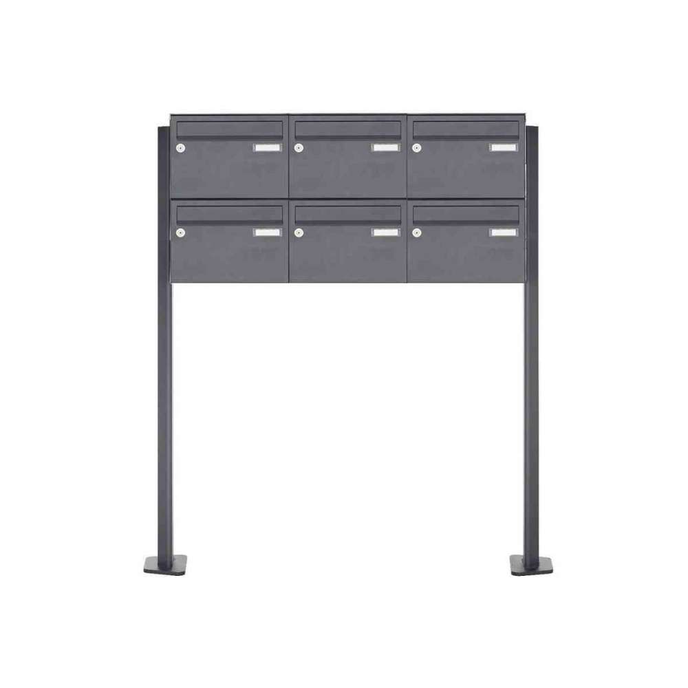 Briefkasten Manufaktur Basic | 6er 2x3 Edelstahl Briefkastenanlage freistehend Design BASIC Plus 385XP ST-T - RAL nach Wahl