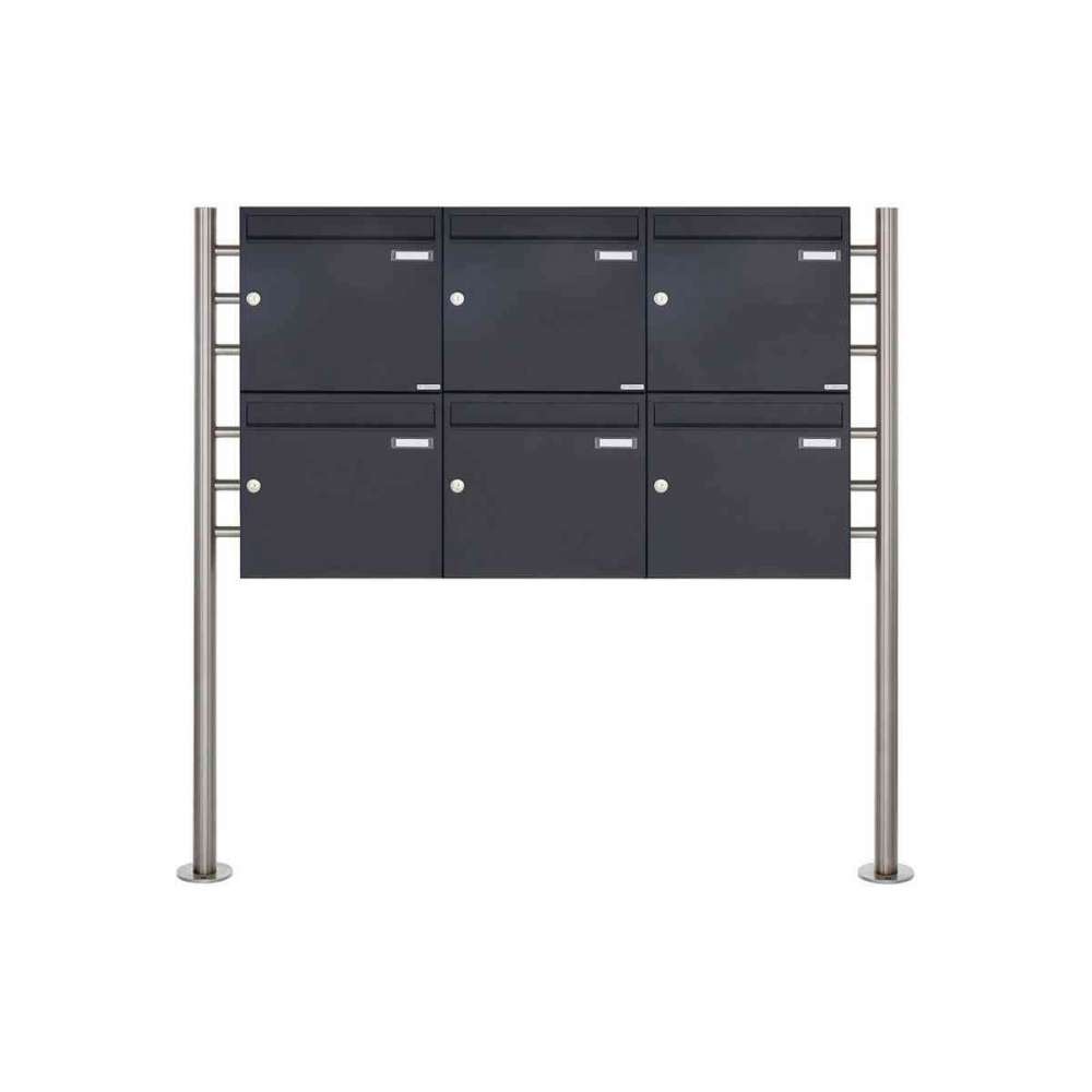Briefkasten Manufaktur Basic | 6er 2x3 Briefkastenanlage freistehend Design BASIC 381 ST-R - RAL 7016 anthrazitgrau 100mm Tiefe