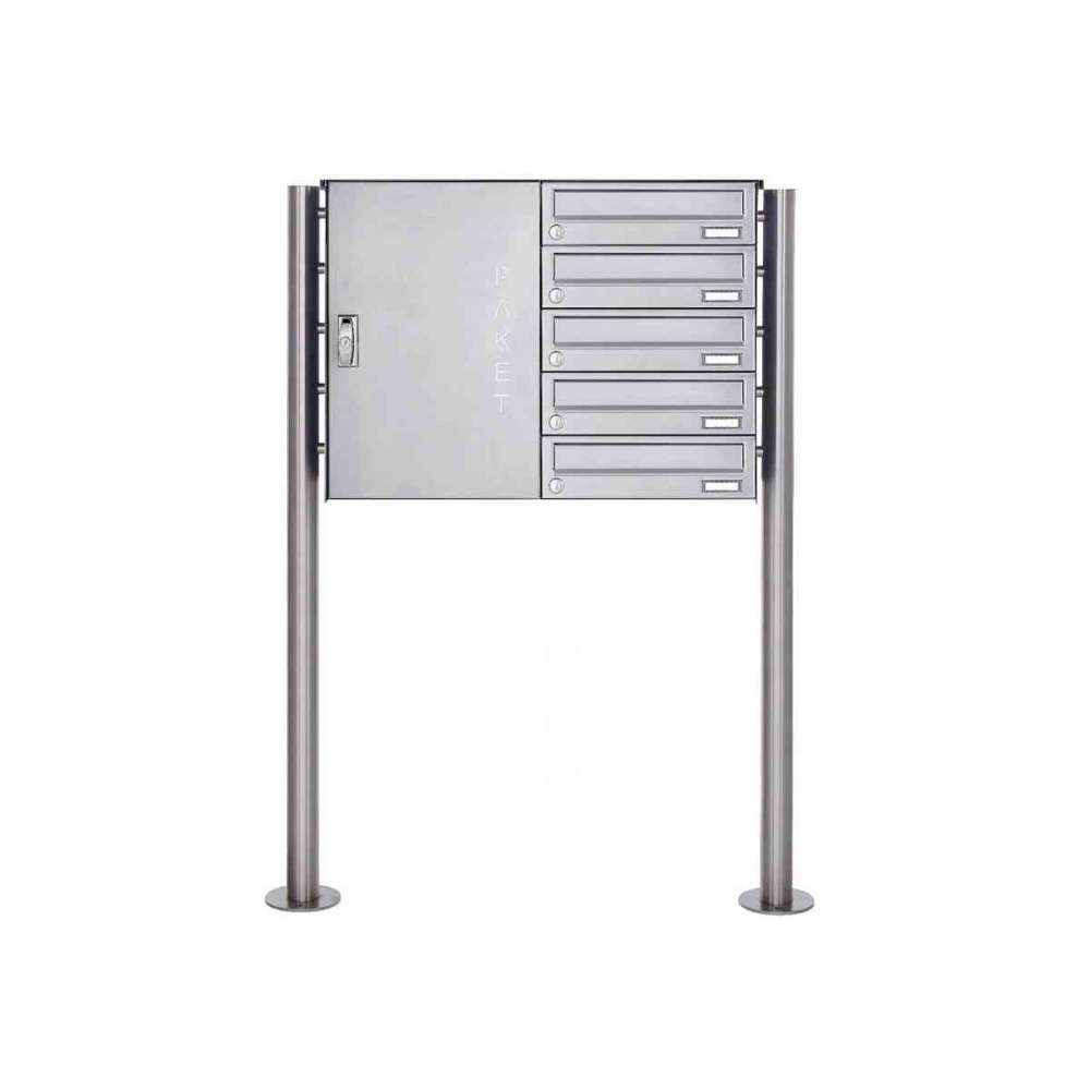 Briefkasten Manufaktur Basic | 5er Edelstahl Paketbriefkasten freistehend BASIC 863 ST-R mit Paketfach 550x370 Rechts