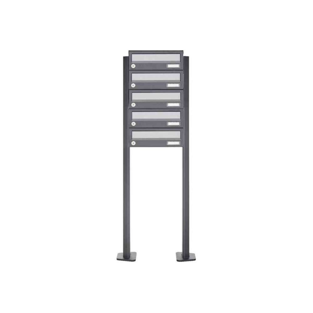 Briefkasten Manufaktur Basic | 5er Briefkastenanlage freistehend Design BASIC 385P ST-T - Edelstahl-RAL 7016 anthrazitgrau
