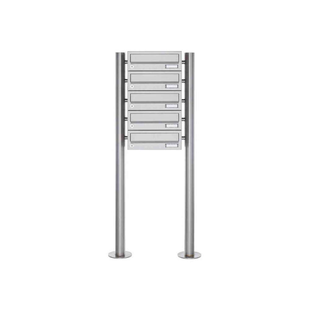 Briefkasten Manufaktur Basic | 5er Briefkastenanlage freistehend Design BASIC 385 ST-R - Edelstahl V2A, geschliffen