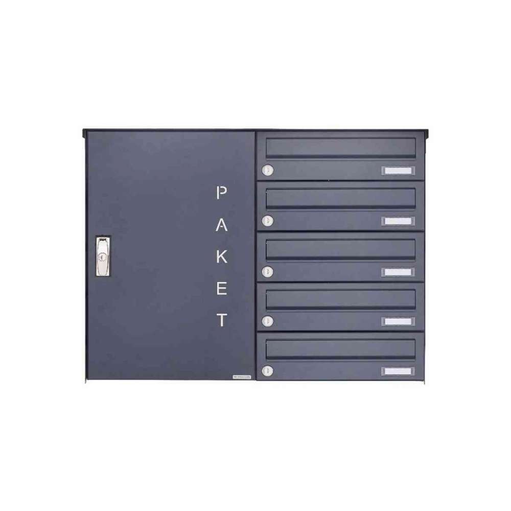Briefkasten Manufaktur Basic | 5er Aufputz Paketbriefkasten BASIC 863 AP mit Paketfach 550x370 in RAL 7016 anthrazitgrau Rechts