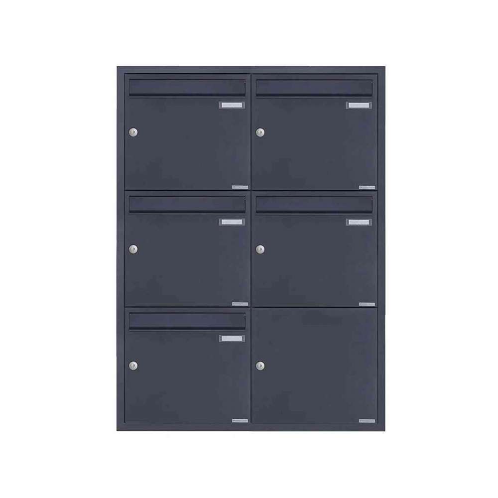 Briefkasten Manufaktur Basic | 5er 2x3 Edelstahl Unterputz Briefkastenanlage BASIC Plus 382XU UP - RAL nach Wahl - 5 Parteien 10