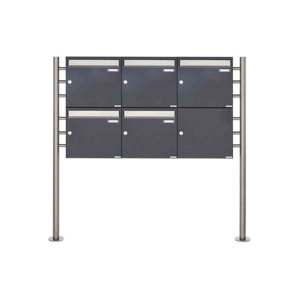 Briefkasten Manufaktur Basic | 5er 2x3 Briefkastenanlage freistehend Design BASIC 381 ST-R - Edelstahl-RAL 7016 anthrazitgrau 10