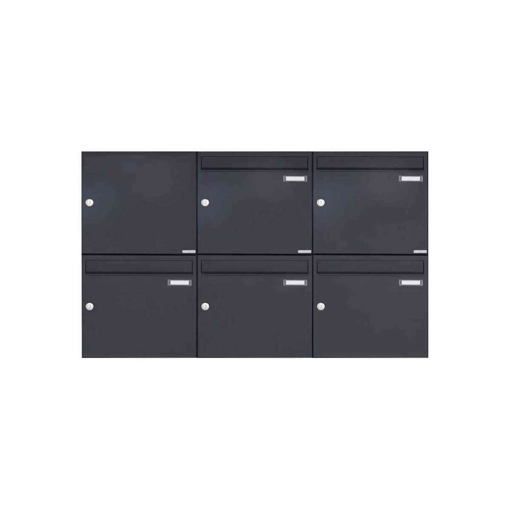 Briefkasten Manufaktur Basic | 5er 2x3 Aufputz Briefkasten Design BASIC 382A AP - RAL 7016 anthrazitgrau Links oben 100mm Tiefe