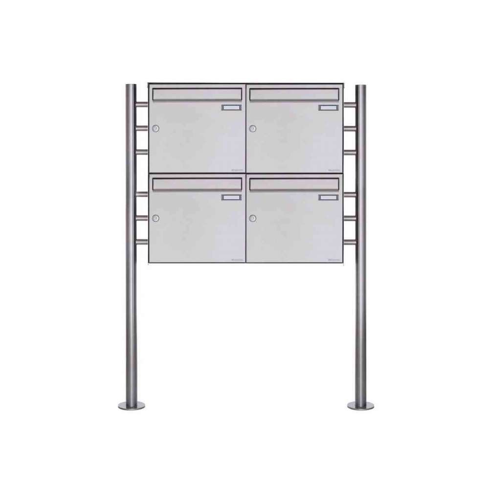 Briefkasten Manufaktur Basic | 4er Edelstahl Standbriefkasten Design BASIC Plus 381X ST R - Edelstahl V2A geschliffen 100mm Tief