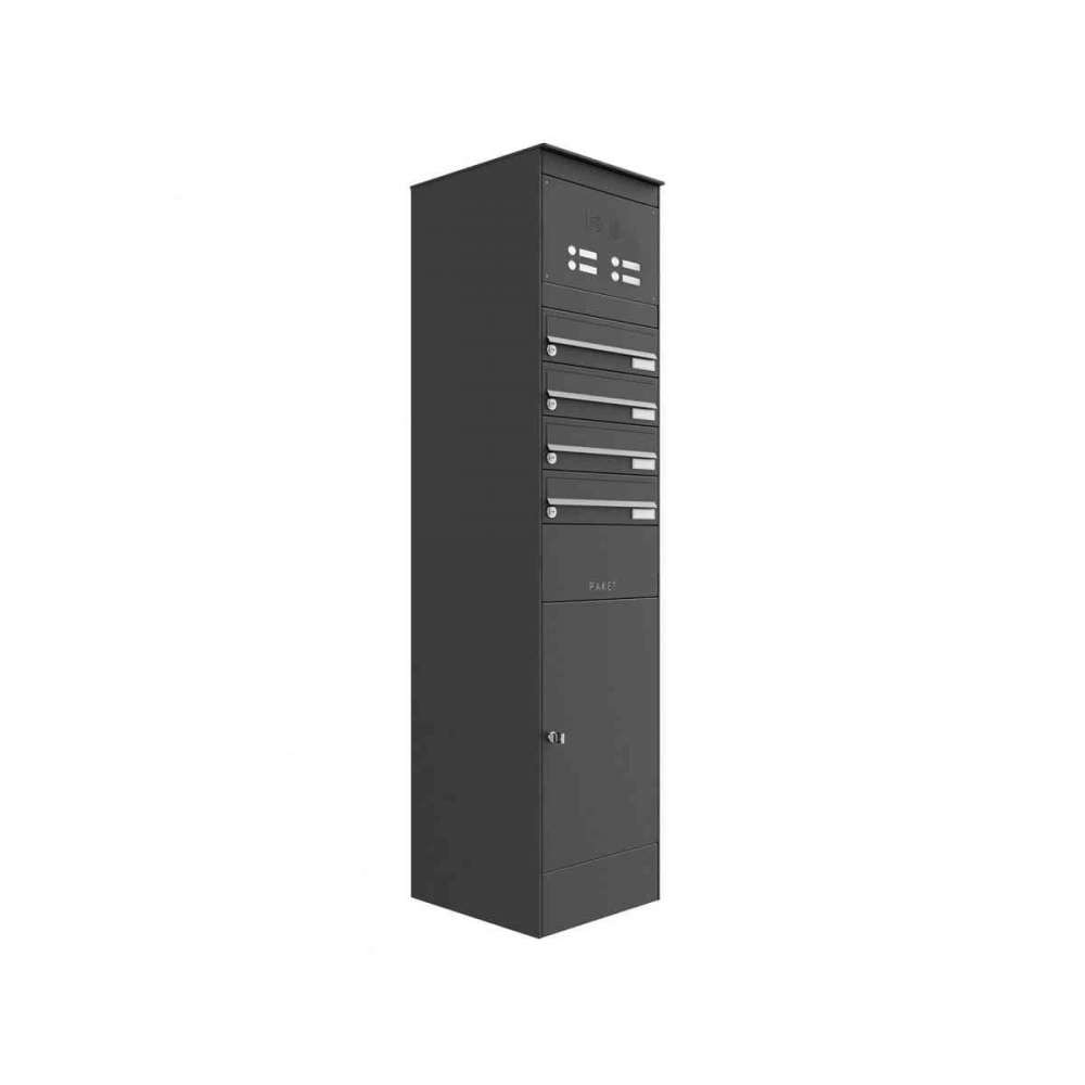 Briefkasten Manufaktur Basic | 4er Edelstahl Briefkastenstele BASIC Plus 864X mit Paketfach 550x370 & Klingelkasten - RAL nach W