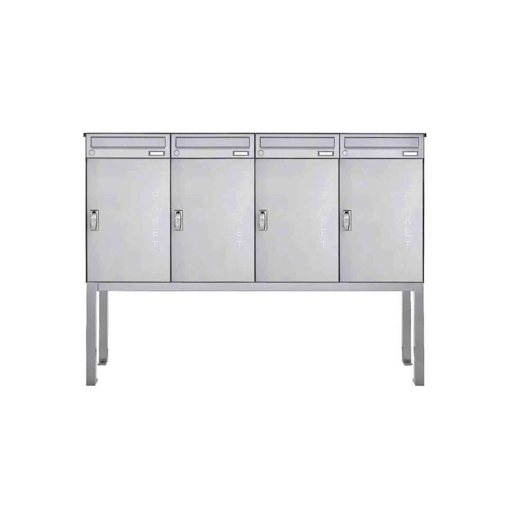 Briefkasten Manufaktur Basic | 4er Edelstahl Briefkastenanlage freistehend BASIC 863B ST-Q - 4x Paketfach - 4x Briefkasten