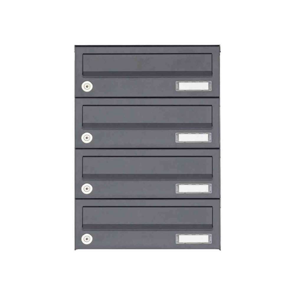Briefkasten Manufaktur Basic | 4er Edelstahl Aufputz Briefkastenanlage Design BASIC Plus 385XA AP - RAL nach Wahl