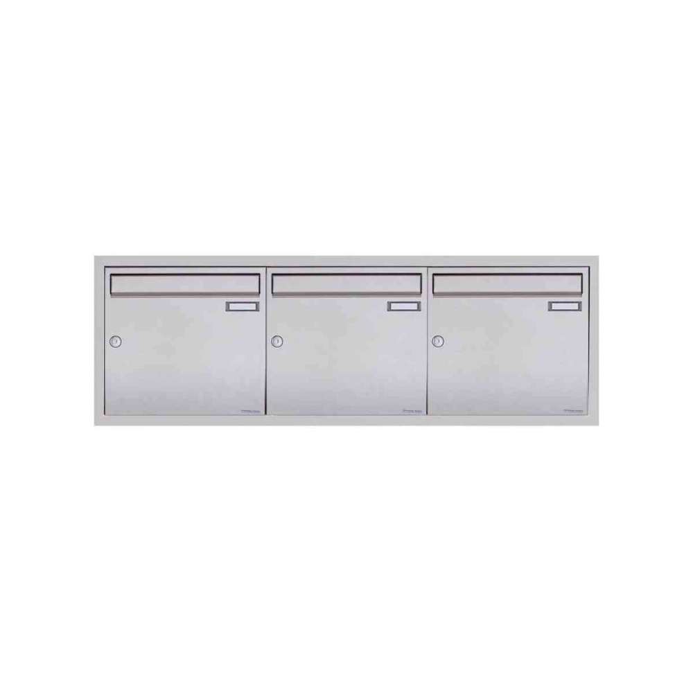 Briefkasten Manufaktur Basic | 3er 3x1 Edelstahl Unterputz Briefkastenanlage BASIC Plus 382XU UP - Edelstahl geschliffen - 3 Par