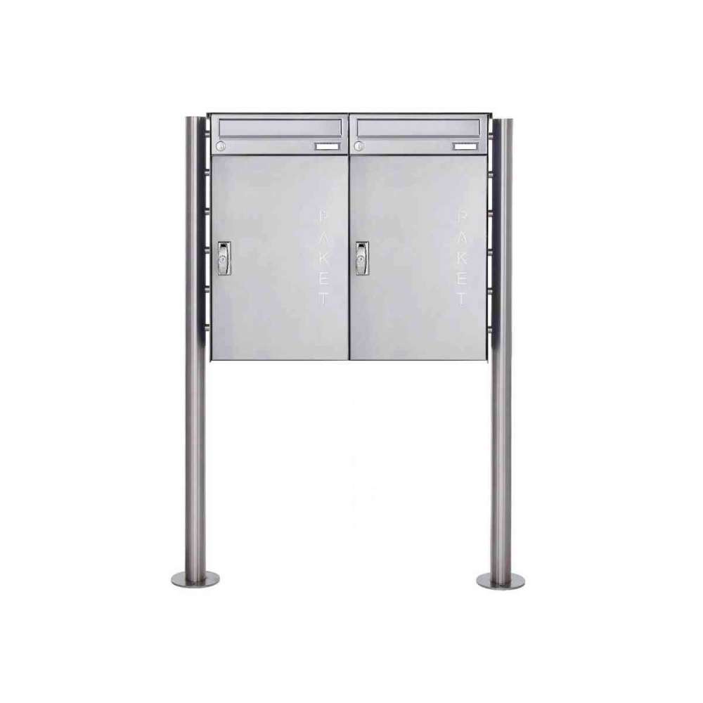 Briefkasten Manufaktur Basic | 2er 1x2 Edelstahl Paketbriefkasten freistehend BASIC 863 ST-R mit Paketfach 550x370