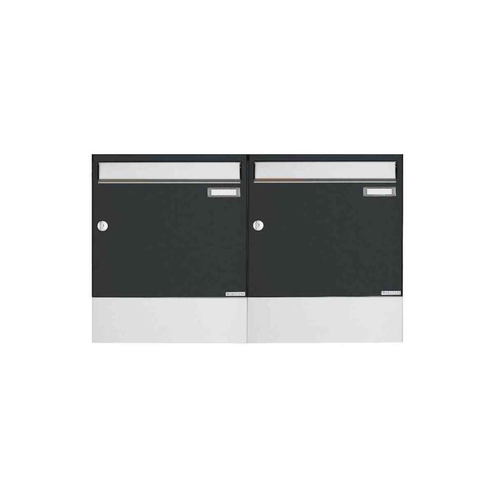 Briefkasten Manufaktur Basic | 2er 1x2 Aufputz Briefkasten BASIC 382A AP mit Zeitungsfach - Edelstahl-RAL 7016 anthrazitgrau