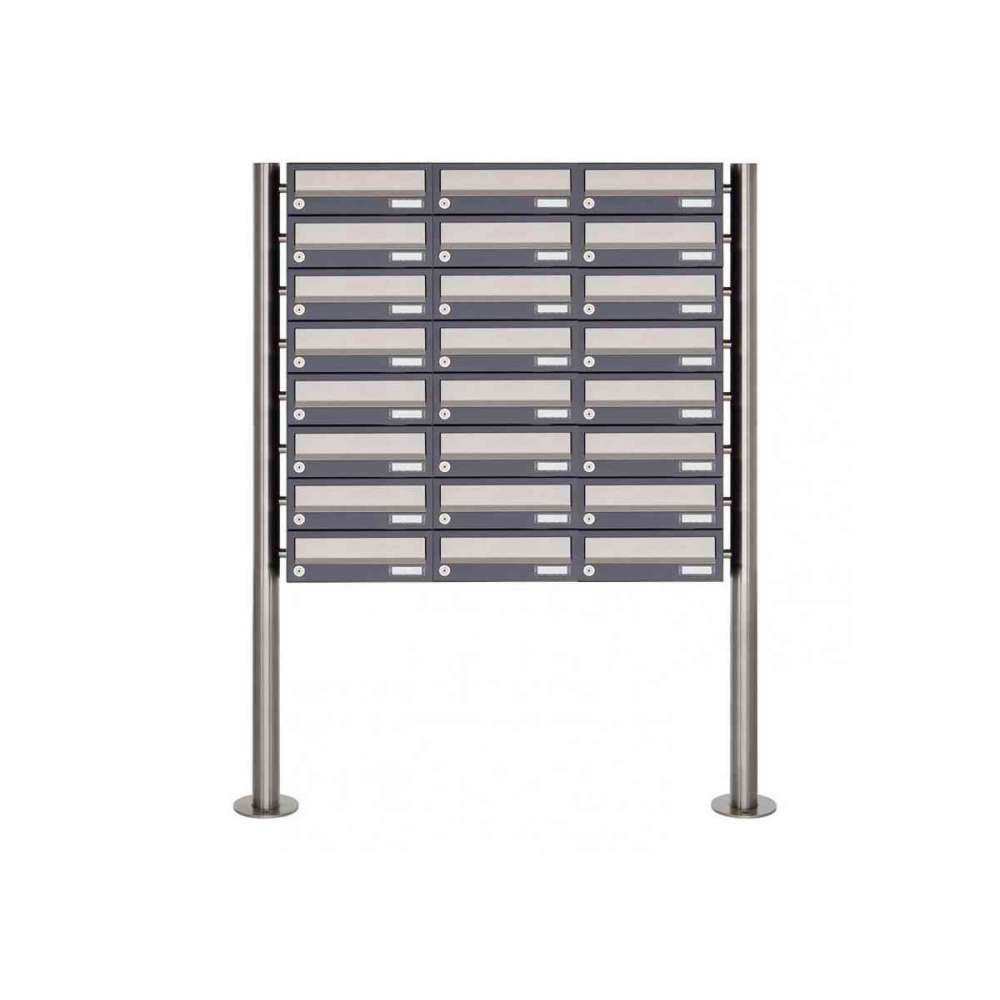 Briefkasten Manufaktur Basic | 24er 8x3 Briefkastenanlage freistehend Design BASIC 385 ST-R - Edelstahl-RAL 7016 anthrazitgrau