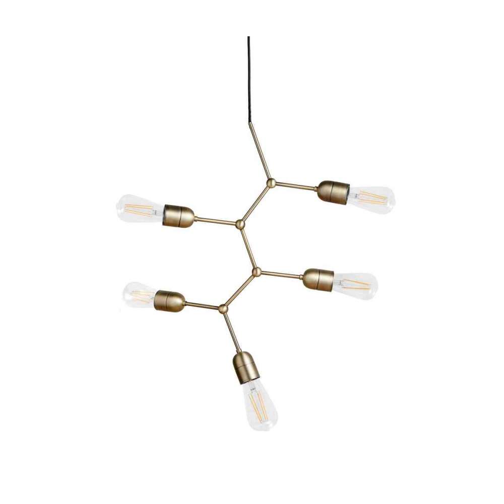 Lampa wisząca Five to podejście zespołu projektowego BoConcept do nowoczesnego żyrandola. Łącząc bardzo modny antyczny mosiądz z eleganckimi ramionami, które pozostawiają odsłoniętą żarówkę, lampa Five nadaje Twojemu domowi dynamiczny i nowoczesny wyraz.