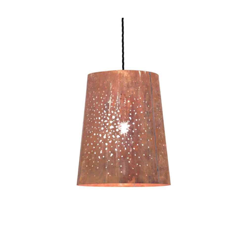 Starry jest wykonany z perforowanej miedzi, której wzór inspirowany jest nocnym niebem. Halogenowe źródło światła w połączeniu z miedzią tworzy jarzące się wnętrze, jednocześnie tworząc grę światła na otaczających ścianach. Detale w kolorze czarnym lub opcjonalnym, czarny kabel. Długość wahadła dowolna. Rozmiar i materiał mogą być produkowane zgodnie z życzeniem. Dostępna z dwoma źródłami światła, halogen na prąd sieciowy i halogen na niskie napięcie.