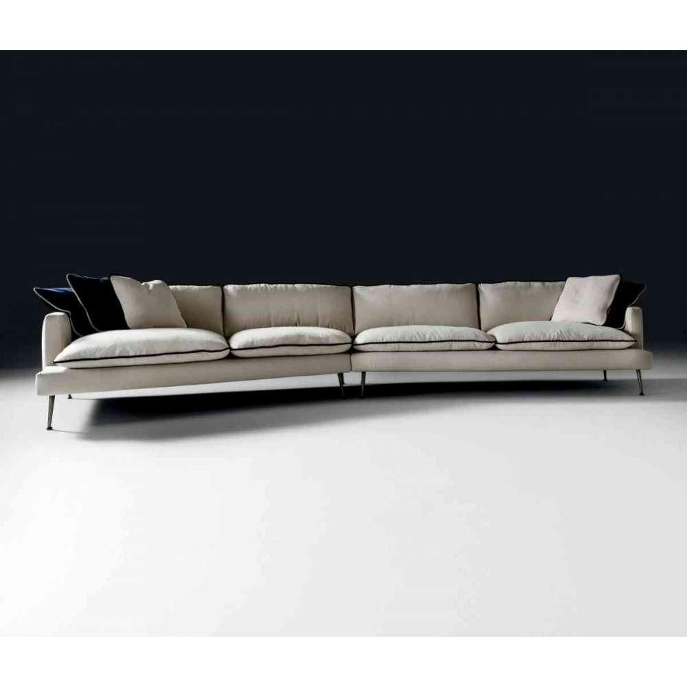 Modułowa sofa o konstrukcji z drewna jodłowego i topoli oraz metalu, z elastycznym systemem sprężyn pasowych naciągniętych na metalową ramę. Wyściółka z ekspandowanego poliuretanu o wysokiej sprężystości, tapicerka z termozgrzewalnego włókna z elastycznym dżersejem. Poduszki siedziska i oparcia w 100% z europejskiego, kierowanego gęsiego pierza, w 10% z puchu, zamknięte w niezależnych pomieszczeniach, wypełnienie z środkową wkładką z pianki memory. W pełni zdejmowane pokrowce z tkaniny, w wersji skórzanej tylko poduszka. Nogi matowe wykończenie w kolorze ciemnego brązu.