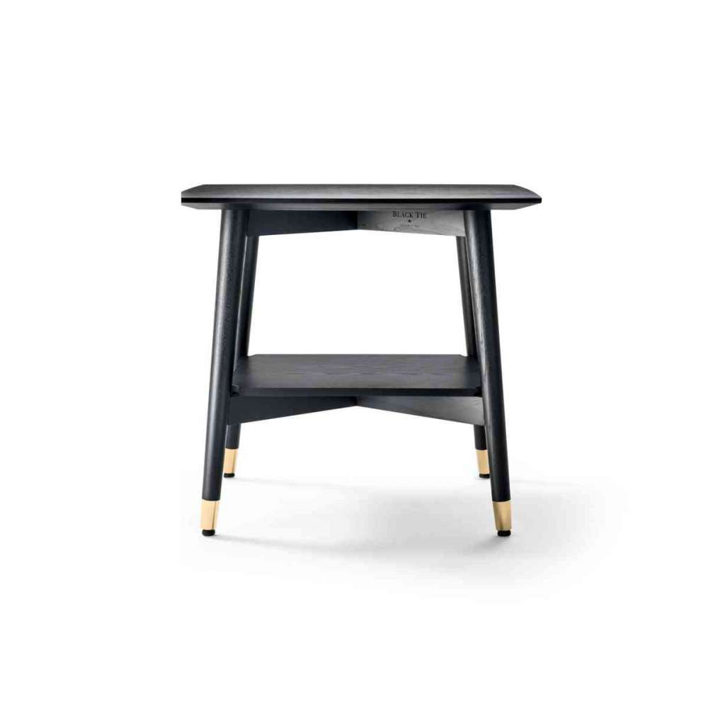 Stolik nocny, konstrukcja z litego jesionu, wykończenie moka. Blat z płyty MDF z okleiną Ash moka. Metalowe ślizgacze w polerowanym złotym wykończeniu. Dostępny z szufladą lub bez.