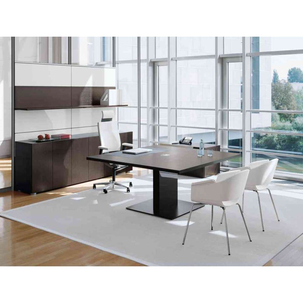 Biura wykonawcze przemawiają nieśmiałą elegancją, wyraźnymi liniami i wysoką jakością wykonania. Linia mebli P2 Executive Office zawiera wysokiej jakości okleiny jako podstawowe elementy materiałowe, które łączą przejrzysty design i redukcję do niezbędnego minimum. Zestaw mebli, który zajmuje tylne miejsce i pozwala materiałom, kolorom i powierzchniom zająć centralne miejsce.