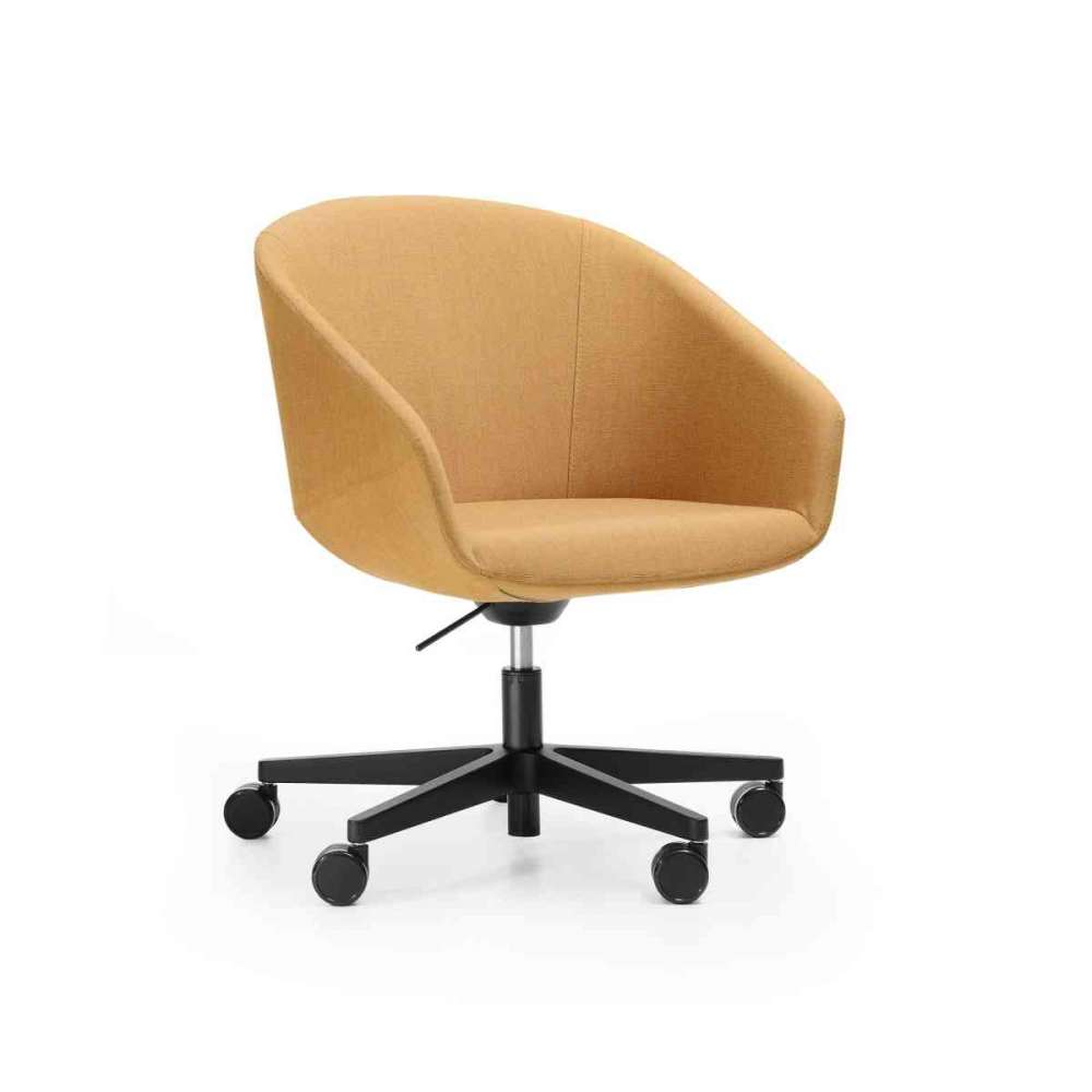 Siedzisko tapicerowane, możliwość tapicerki w 3 różnych kolorach w ramach 1 tkaniny, podstawa aluminiowa polerowana lub malowana proszkowo pięcioramienna (kolorystyka wg wzornika Bejot), stelaż na kółkach