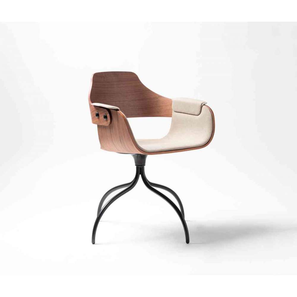 Malowane metalowe rurki Stalowa konstrukcja. Siedzisko i oparcie ze sklejki z elementami zewnętrznymi z lakierowanego MDF, lakierowanego orzecha włoskiego lub lakierowanego efektu natury, naturalnego jesionu, dębu barwionego na jesion lub czarnego jesionu. Ozdobne guziki metalowe wykończone są w kolorze konstrukcji. Opcjonalne podłokietniki tapicerowane różnymi materiałami. Poduszka siedziska, wewnętrzna poduszka siedziska i oparcie tapicerowane różnymi materiałami.