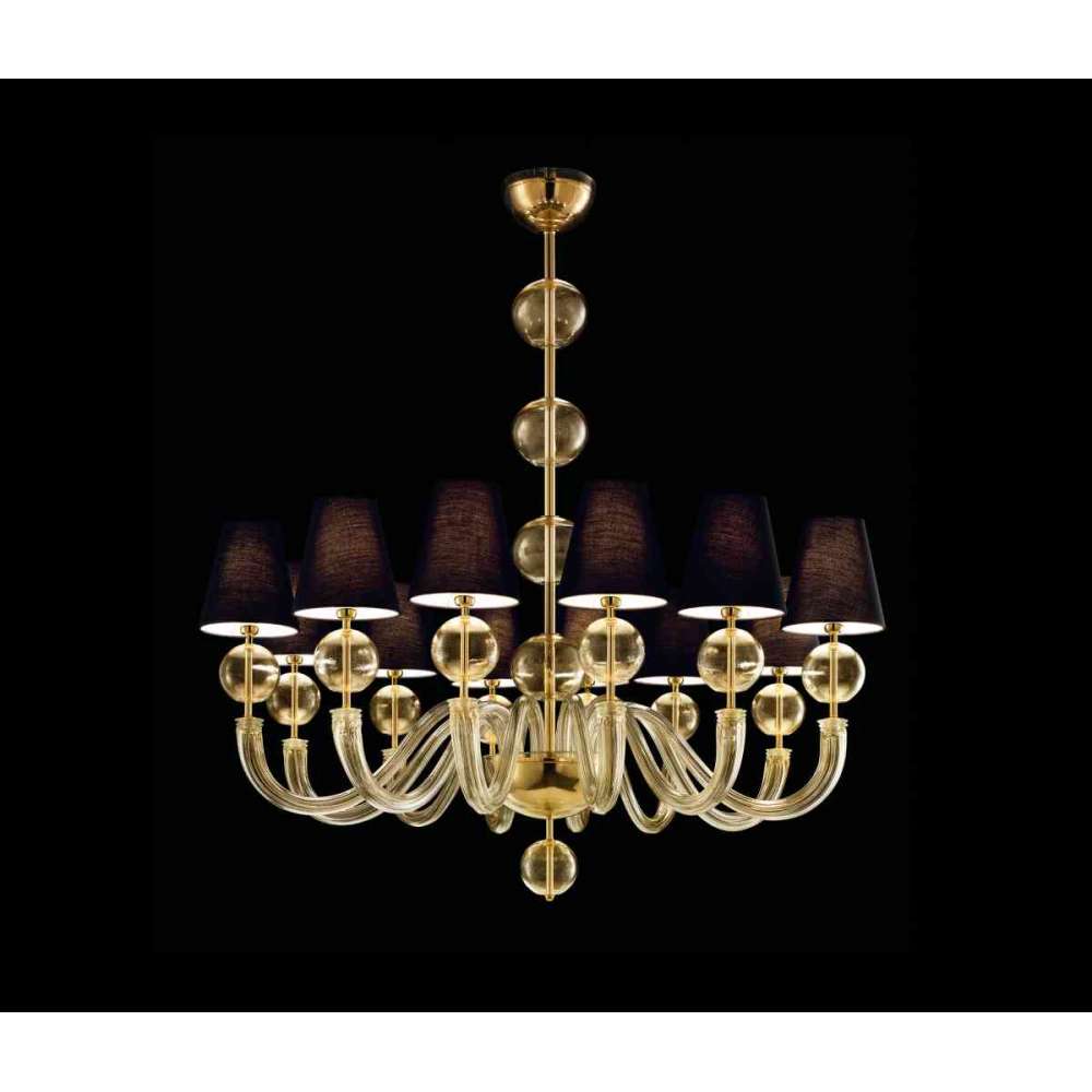 Kryształowe kule są dominującą cechą kolekcji Vermont, która po raz pierwszy pojawiła się w katalogu Veneziani ponad dekadę temu. Dostępnych jest kilka różnych rozmiarów (6, 9, 12 lub 18 ramion), w tym dwa kinkiety ścienne z 2 lub 5 punktami świetlnymi. Dwa kolory w asortymencie: złoty i kryształowy, pierwszy ze złoconymi metalowymi wykończeniami, drugi chromowany.