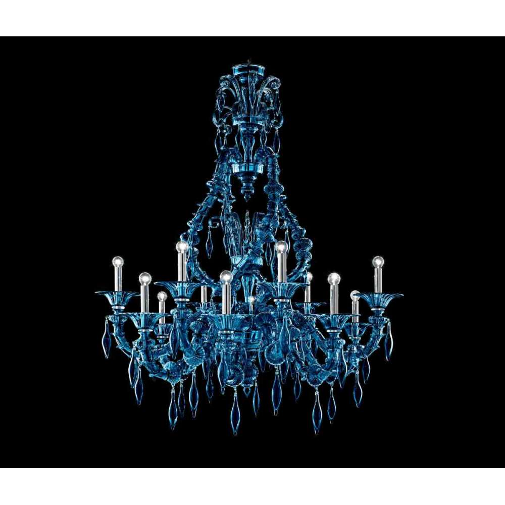 Dostarczany w efektownych kolorach, jak również z przezroczystego kryształu, ten wysokiej klasy żyrandol ma przyciągający wzrok efekt „śruby” z zawieszkami w tym samym kolorze i jest dostępny w opcji z dwunastoma lub szesnastoma żarówkami. Kolekcja San Giorgio obejmuje również kinkiet. Wykończenie z polerowanego chromu.