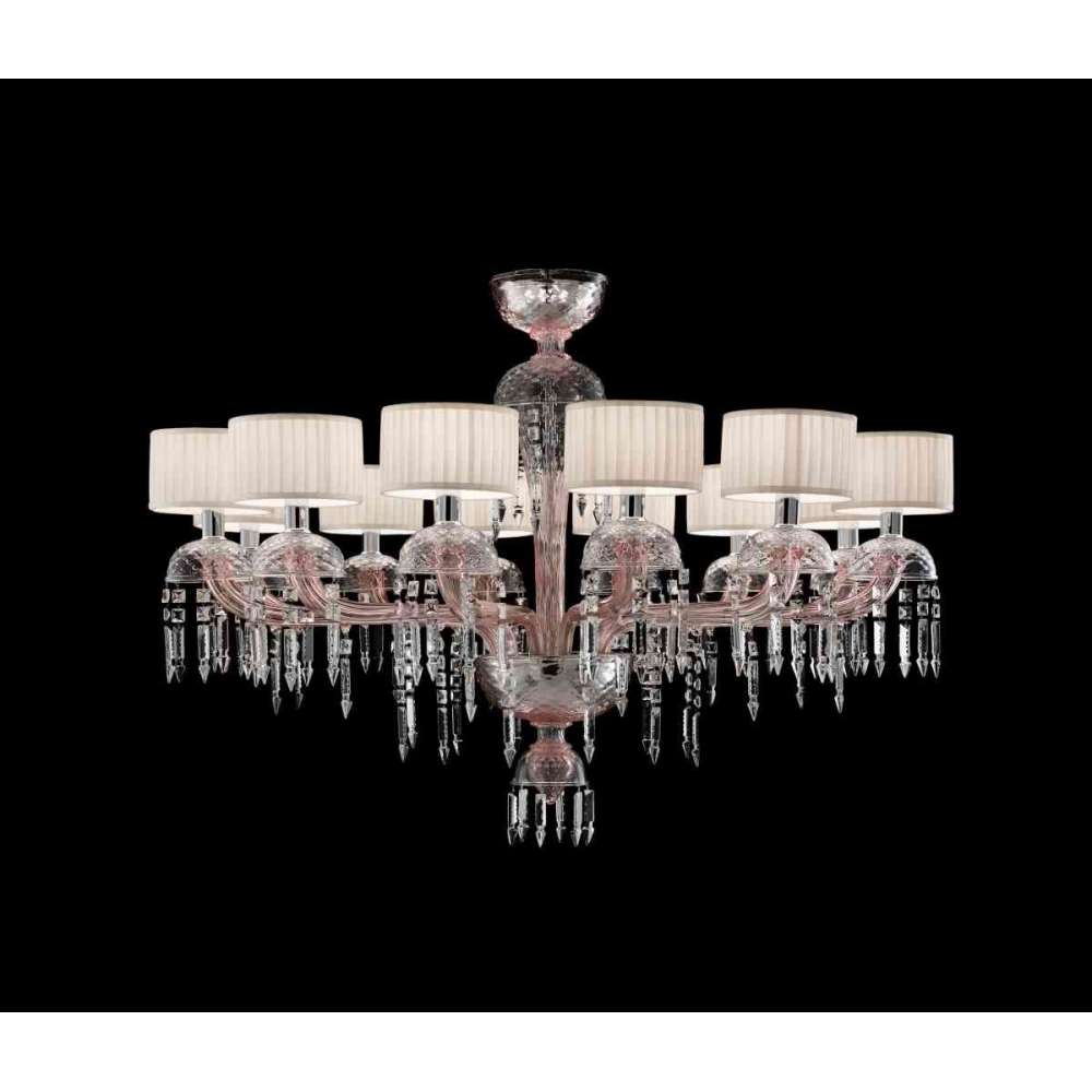 Opływające wisiorki żyrandole z tej eleganckiej kolekcji charakteryzują się niezwykłą orientacją oprawek, które zawsze są kryształowe, niezależnie od koloru wybranego z sześciu dostępnych. Dostępne są w dwunastu, szesnastu lub dwudziestu czterech lampach