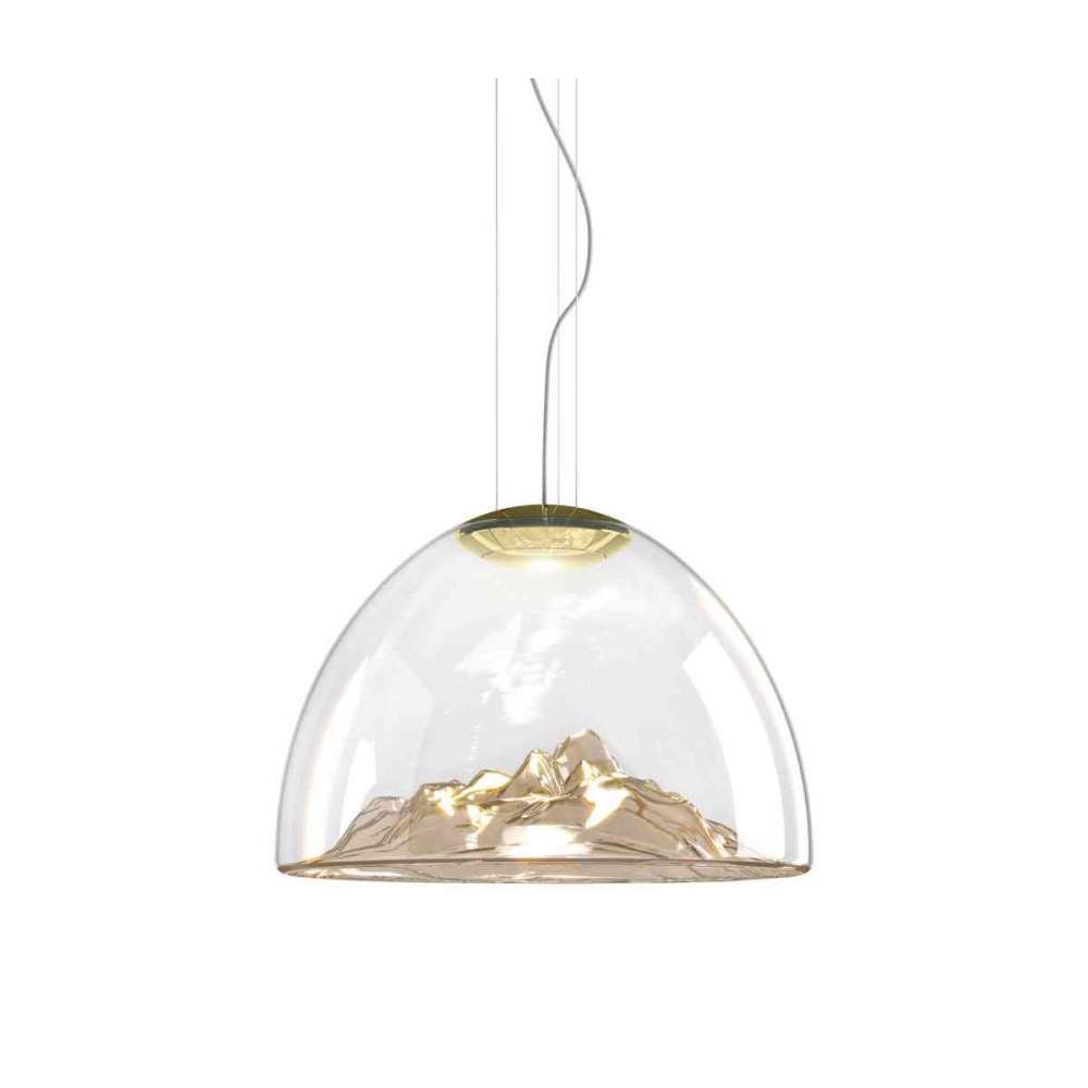 Przezroczysta zawieszka z dmuchanego szkła, dostępna z dekoracją lub bez na górze. Wbudowane źródło światła LED. Lampa projektu Dima Loginoff.