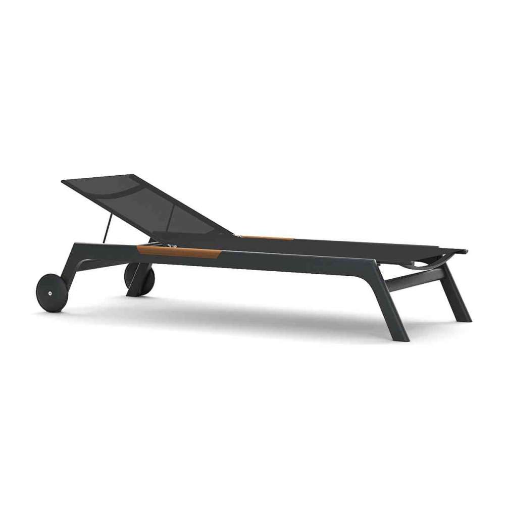 Czysty, czysty i ponadczasowy. Leżak z grafitowego lub białego aluminium z wstawkami z drewna tekowego jest idealny do przestrzeni zewnętrznych i można go dostosować do każdego kontekstu, od mieszkalnego po hotelowy.