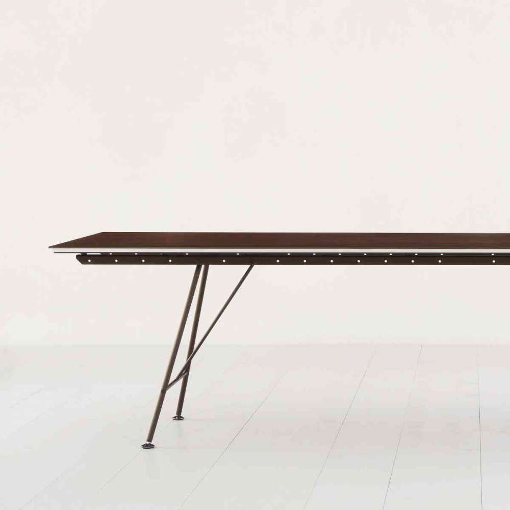 Stół wielofunkcyjny. Tabela Unistandardtisch jest podstawowym elementem programu Uniprogramm. Dzięki modułowej budowie i zmiennej konstrukcji z regulacją wysokości od 73 do 75 cm, ten uniwersalny stół może mieć szerokie zastosowanie zarówno w środowisku pracy, jak iw domu. Konstrukcja pozwala na zastosowanie jednego długiego stołu zamiast kilku małych i oferuje nowe rozwiązania w planowaniu przestrzeni prywatnej lub biurowej. Długość blatu może wynosić od 150 do 400 cm w zależności od wymagań. Szerokość panelu z blachy falistej jest zależna od rodzaju podstawy i może wynosić 74 lub 90 cm. Dostępna jest szeroka gama powierzchni i typów blatów.