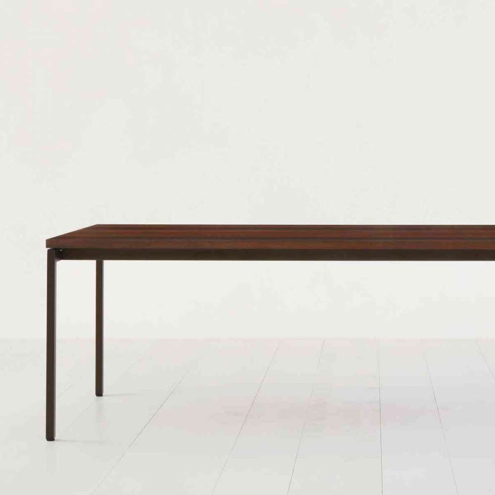 Odsunięcie ramy daje wrażenie unoszącego się blatu, co dodaje mu lekkości i elegancji. Używany jako stół biurowy, dzięki rozsuwanemu blatowi, wszelkie kable można schować w korytku kablowym. Stół może być oczywiście używany w domu bez tych dodatków.