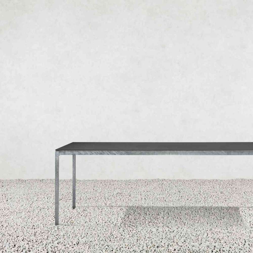 Stół ogrodowy Thesis jest odporny na wszystkie warunki pogodowe dzięki ocynkowanej ramie i blatowi wykonanemu z Eternitu. Blat stołu – mający zaledwie 8 mm grubości – wydaje się unosić w powietrzu dzięki przesuniętym do wewnątrz fartuchom. Do stołu ogrodowego Thesis oferujemy również ławkę ogrodową Thesis odpowiadającą długościom stołu. Powierzchnia siedziska ławki również składa się z eternitu, który jest dostępny w dziewięciu kolorach. H 73 cm