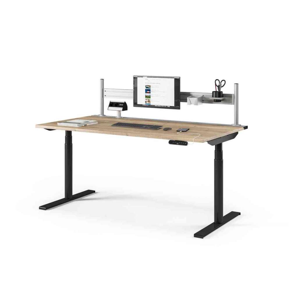 Biurko Tensos z elektryczną regulacją wysokości łączy w sobie ergonomię z nowoczesnym designem. Regulacja wysokości zapewnia maksymalną elastyczność zmiany pozycji roboczej z siedzącej na stojącą. W ten sposób biurko do pracy w pozycji siedzącej i stojącej przyczynia się do większego ruchu, a ostatecznie do lepszego zdrowia pleców w pracy. - Rama nóg, prowadnice, panel boczny i rama górna w tym samym kolorze