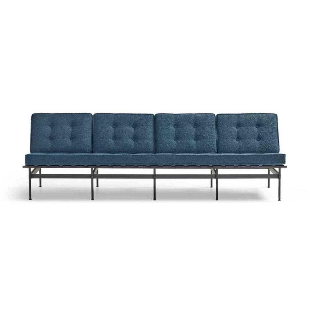 Seria 416 z lat 60. Sofa 3-osobowa z wyściełanymi poduszkami. Ta kultowa seria została zaktualizowana do dzisiejszych standardów ergonomii i rozszerzona o sofę 4-osobową i nowoczesne opcje wykończenia.