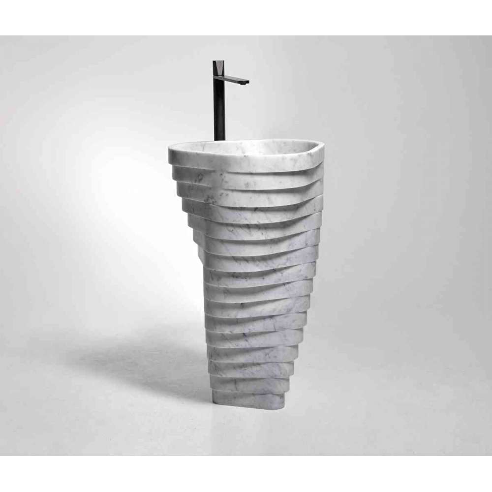 Vortice to nowy wolnostojący zlewozmywak z marmuru Carrara zaprojektowany przez Paolo Ulian dla antoniolupi. Nowy projekt, który jest częścią badań prześledzonych z Intreccio (2018) w celu pogłębienia tematu współczesnej materii, zbadania złożonego dialogu między bezruchem a dynamiką, między solidnością a lekkością, między rzeczywistością a pozorem. W Vortice materia nabiera kształtu dzięki ludzkiej myśli i zastosowaniu zaawansowanych technologii przetwarzania. Projekt, który najlepiej wyraża ten pozytywny cykl między naturą, człowiekiem i maszyną. Vortice ma małą podstawę i rozwija się w górę poprzez ruch obrotowy, generując płynne i kręte geometrie, podkreślone przez unikalne żyły i plastyczne zachowanie materiału. Vortice to umywalka o rzeźbiarskiej, ale lekkiej prezencji, to domowa mikroarchitektura, która nawiązuje kształtem i proporcjami do nowych wieżowców, które przekształcają metropolie świata, pozostając jednocześnie światłem. Vortice to symbol wyjątkowości i typowego włoskiego know-how. Wykonany jest z jednego bloku marmuru podzielonego na 16 warstw. Vortice składa się z koncentrycznych pierścieni zachodzących na siebie w sposób schodkowy. Drastycznie zmniejsza to ilość odpadów wytwarzanych przez CUT