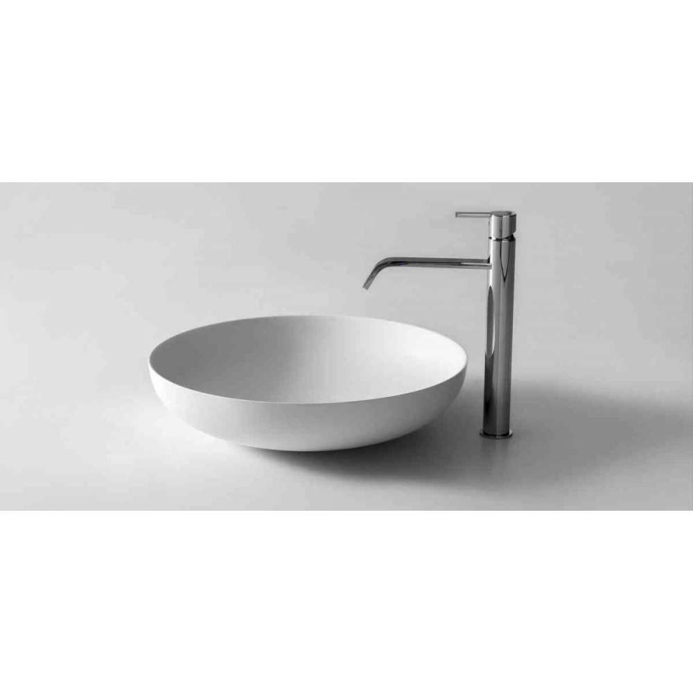 Idealne koło, narysowane cienkimi krawędziami Flumood, geometria, która tworzy płytkie zagłębienie. Całkowity obraz światła, wyważona równowaga, która konkuruje z brakiem podstawy, która prawie znika z pola widzenia. Umywalka, która łączy współczesne nowe moduły, jednorodne lakierowane wykończenia, wyrafinowane i delikatne detale, ostre i precyzyjne ścieżki.