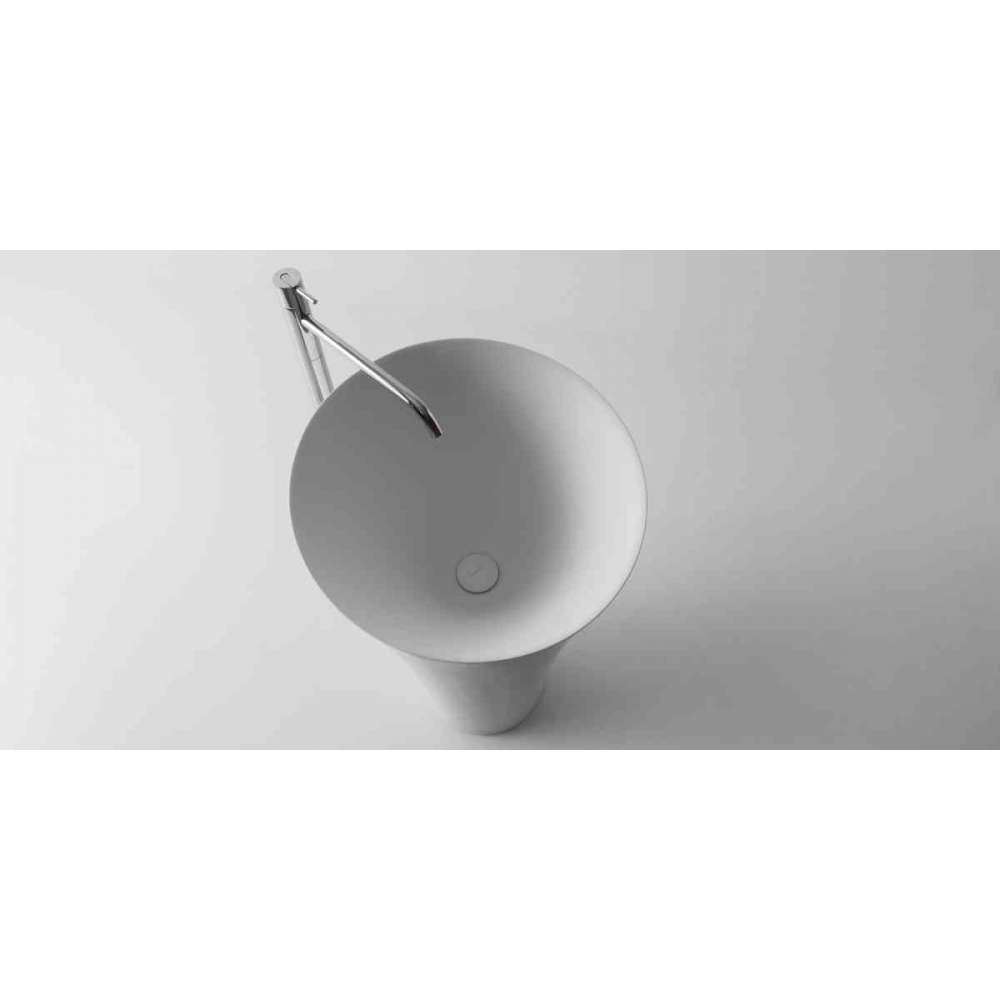 Rozwija się na wysokość z okrągłej podstawy, aby otworzyć się i przyjąć otaczającym gestem przepływ wody . Tuba, wykonana z Cristalplant, prowadzi do niezwykle naturalnej i wyrafinowanej atmosfery z elementami o silnym efekcie wizualnym. W wersji wolnostojącej proponuje przekątną, która nadaje nowy wygląd krawędzi umywalki, podczas gdy jej rzeźbiarski wygląd ujawnia zmieniający się wyraz formalny w oparciu o punkty obserwacyjne. Wersja dwukolorowa wewnętrzna/zewnętrzna podkreśla charakter podkreślając idealną kolistą geometrię szczytu.