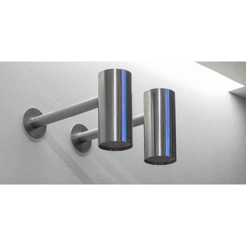 SHAWÀ to współczesna reinterpretacja kolumny prysznicowej typu industrialnego. Nowa wolnostojąca kolumna prysznicowa zaprojektowana do użytku wewnątrz lub na zewnątrz. Zestaw rur o różnej grubości charakteryzujący się wyraźnymi i czystymi liniami, w których wylewka osiąga średnicę 115 mm.