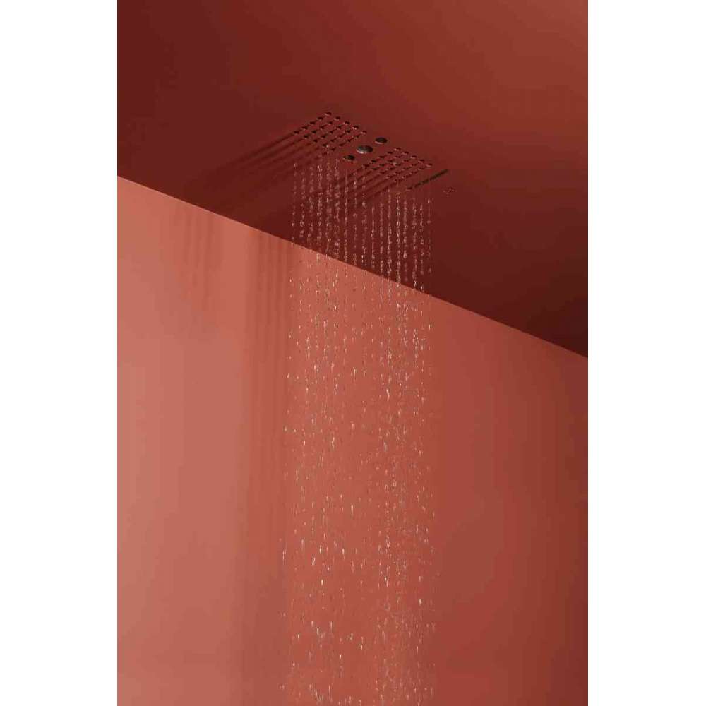 Ghost to słuchawka prysznicowa. Całkowicie znika, pozostawiając rolę bohatera wodzie i jej regenerującemu działaniu. Idealnie wkomponowana w sufit wysuwana słuchawka prysznicowa Ghost ujawnia się dopiero po uruchomieniu. Po wyłączeniu tylko otwory, w których znajdują się małe, ale wydajne dysze, ujawniają swoją obecność, definiując regularną siatkę gotową do przekształcenia się w strefę relaksu i absolutnego dobrego samopoczucia dzięki doskonałemu wymieszaniu powietrza i wody. Składająca się z kwadratowej lub prostokątnej płytki Flumood, w której „zatopiono” dysze, głowica prysznicowa idealnie komponuje się z sufitem, a po dokładnym goleniu można ją pomalować na ten sam kolor, co powierzchnia, na której się znajduje. Ewolucja na suficie ścieżki, którą obrała antoniolupi z kominkami zintegrowanymi ze ścianą, była kontynuowana ze zintegrowanymi umywalkami i już spadła w słuchawkach prysznicowych z Meteo Out i Meteo In. Eleganckie przedmioty, które bawią się pojęciami obecności/nieobecności, wyrażając swoją formę w wyniku gestu, często destrukcyjnego, czasem lekkiego i delikatnego. Podobnie jak w umywalce Strappo, która energicznie wystaje ze ściany, tak w Ghost wydaje się być siłą wody, która „przebija” ciągłą powierzchnię sufitu, generując ożywczy deszcz, wyraźne nawiązanie do doświadczenia generowanego przez naturalną zjawisko. Eleganckie, minimalistyczne i doskonale zintegrowane rozwiązanie, w którym każdy szczegół został przestudiowany zarówno z estetycznego, jak i funkcjonalnego punktu widzenia. W rzeczywistości specjalne narzędzie pozwala na indywidualne wyjmowanie dysz do kontroli i ich wymianę. Urządzenie pozwalające na perfekcyjną pielęgnację bez konieczności pójścia na kompromis z idealną ciągłością powierzchni.