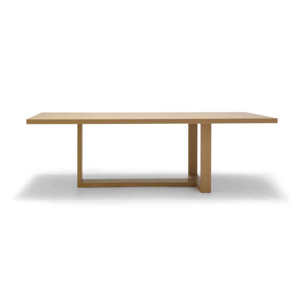 Stoły z okleiną dębową i podstawą z litego drewna. Siła, elegancja i silny zmysł rzeźbiarski sprawiają, że ta seria jest wyjątkowym dziełem, które ma trzy różne rozmiary.