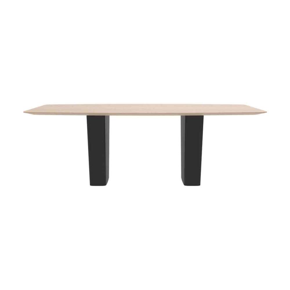 Program stołów dostępny w różnych typach podstaw i blatów. Centralne podstawy polietylenowe dostępne w różnych kolorach. Blaty z płyt drewnianych o różnych kształtach i rozmiarach, dostępne w wykończeniu dębowym, lakierowanym, laminowanym, HPL, Dekton i szklanym. Dostępna skrzynka przyłączeniowa. Możliwość rejestracji drzwi.