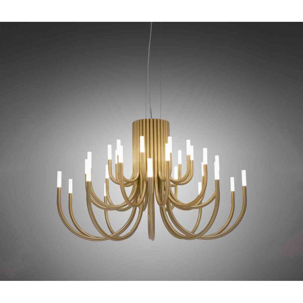 THEPALM jest dostępny w trzech rozmiarach: 12 ramion, 18 ramion i 30 ramion. Są one cylindryczne i tworzą oprawę oświetleniową, montując je obok siebie, tworząc obwód wokół centralnego korpusu. Wykonane są z żelaza, wykończone metalizowanym złotem lub niklem lub pomalowane na biało. Na końcu każdego ramienia znajduje się dioda Led Cree 1.9W 2700K 158lm, która oświetla dyfuzor z piaskowanego litego metakrylanu, który wytwarza przyjemne i mocne rozproszone światło, które nie oślepia. W razie potrzeby kolekcję PALM można zamówić w wersji ściemnianej.