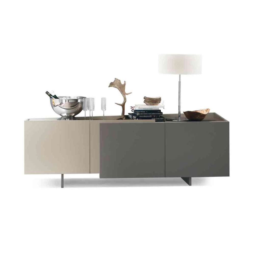 Nowoczesne i współczesne meble Kredens. Rama z matowego lakierowanego MDF. Wyposażona w dwie wewnętrzne półki i dwie środkowe szuflady.