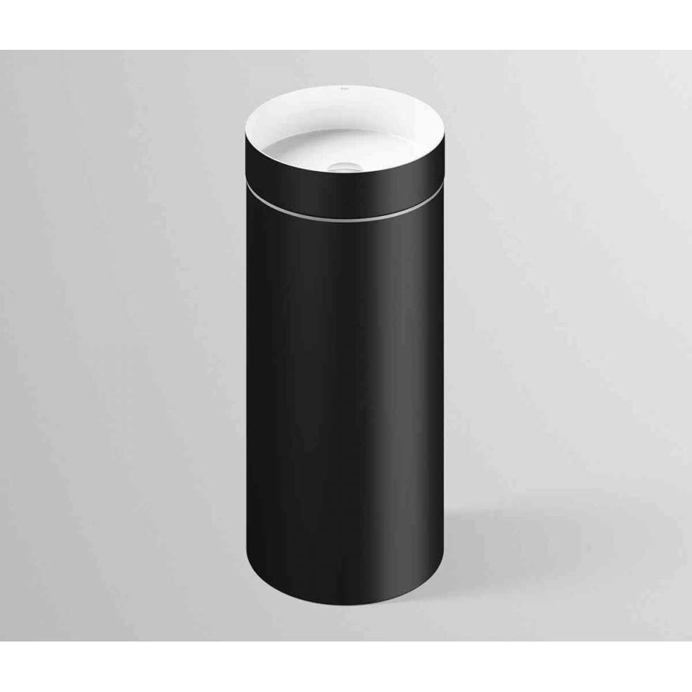 Szafka pod umywalkę, okrągła, szer./wys./gł. 400/900/442 mm, zlewozmywak okrągły, wyśrodkowany, Ø 394 mm, zlewozmywak 99 mm, stal szkliwiona, czarny mat/biały połysk, bez otworu na baterię, bez przelewu, w zestawie mocowanie, zawór spustowy, zakrętka zaworu, szkliwiona na biało, syfon, chromowany pierścień dystansowy, czarny uchwyt ścienny