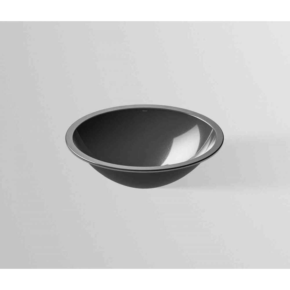 Umywalka podblatowa, owalna, szer./wys./gł. 481/150/383 mm, stal szkliwiona, metaliczna, bez otworu na baterię, bez przelewu, w komplecie zestaw montażowy, zawór odpływowy, nakrętka, metaliczny ciemny żelazo szkliwiony