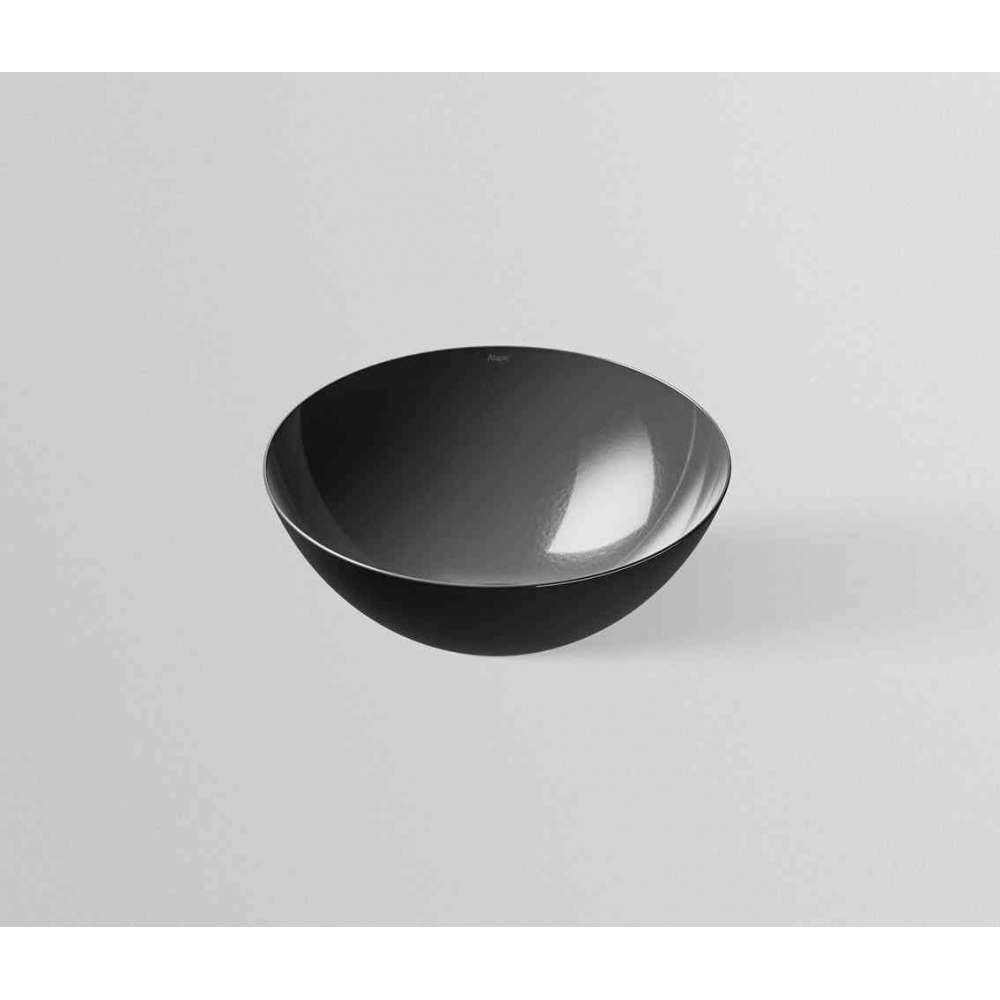 Umywalka, okrągła, Ø 360 mm, wys. 130 mm, stal szkliwiona, metaliczna, bez otworu na baterię, bez przelewu, w zestawie, zawór spustowy, zaślepka zaworu, metaliczny ciemny żeliwo szkliwiony, pierścień dystansowy czarny