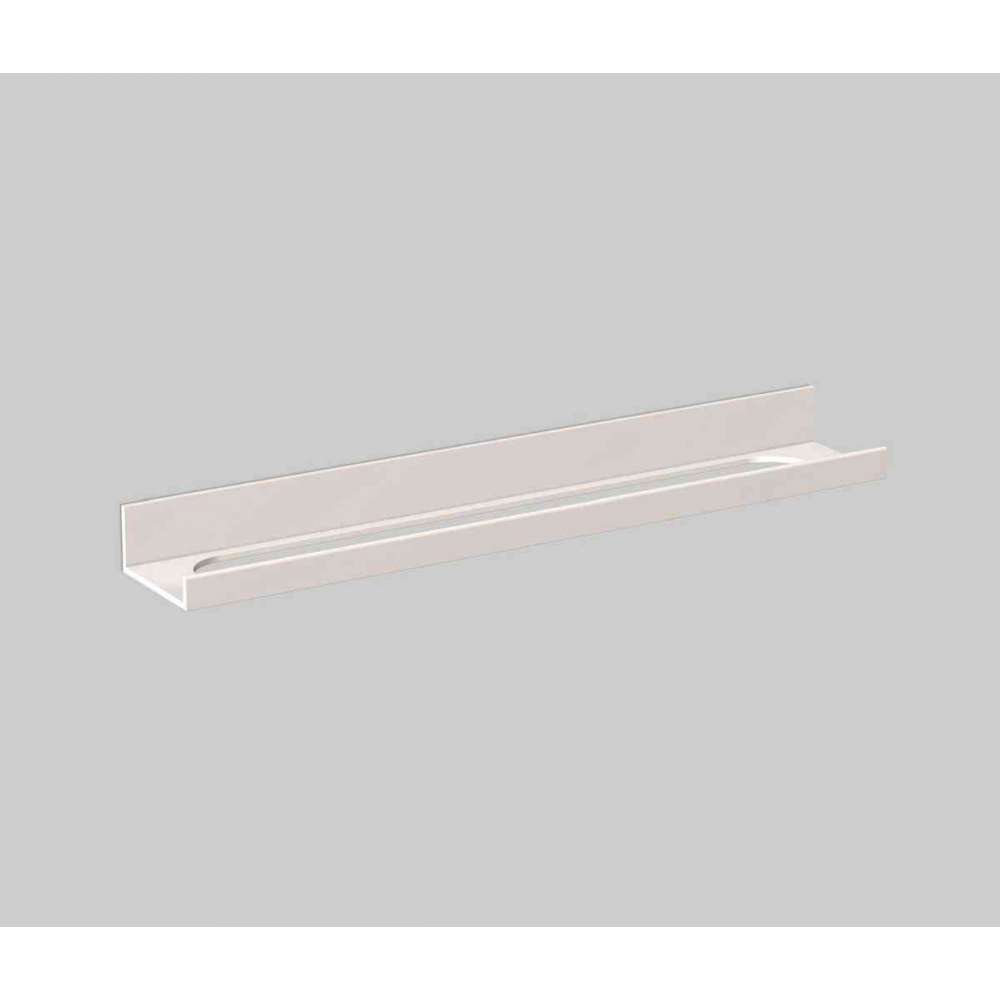 Półka prostokątna szer./wys./gł. 600/50/100 mm, aluminiowa, biała matowa, malowana proszkowo, centralnie wycięty ręcznik, w komplecie zestaw montażowy, bez kołków (do dopasowania do sytuacji konstrukcyjnej)