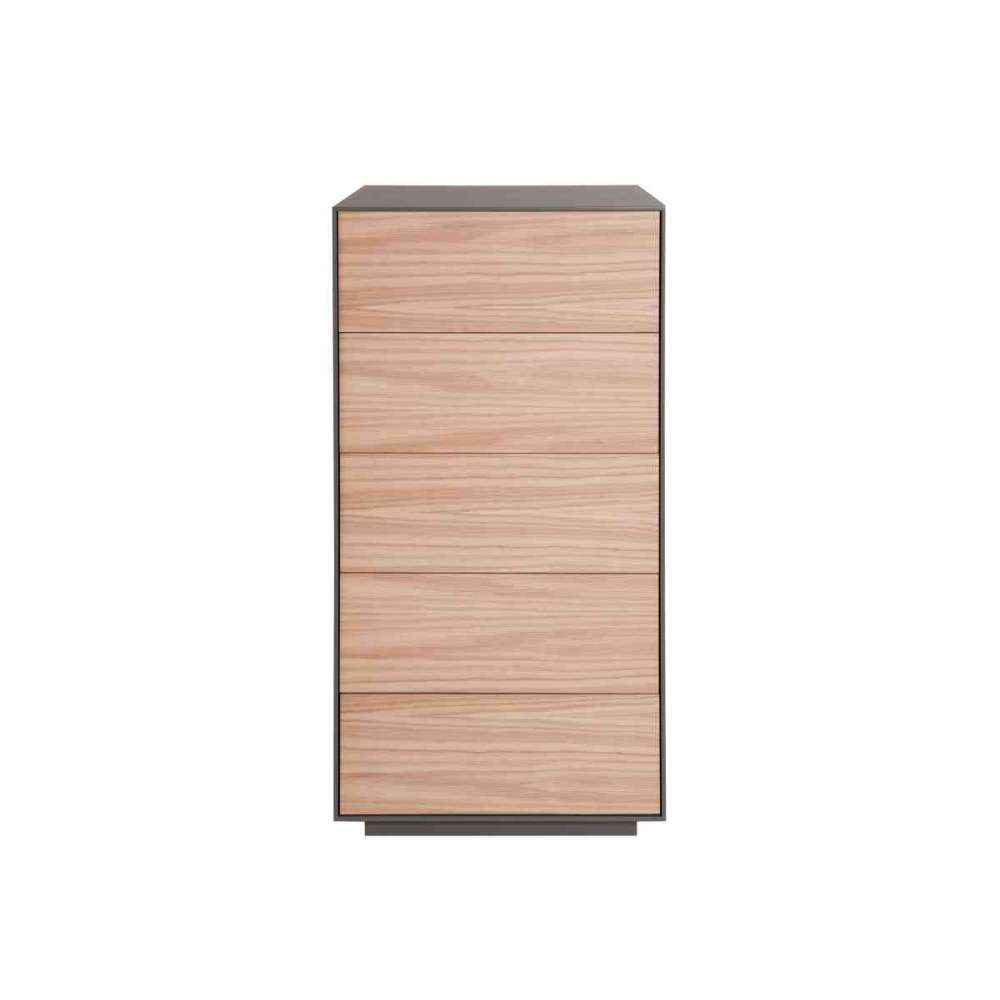 Komoda z 5 szufladami w różnych rozmiarach.