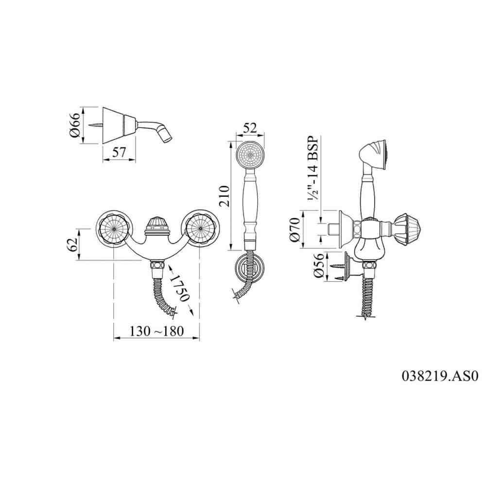 Bateria prysznicowa 2-otworowa z kryształami Swarovskiego®. Bronces Mestre Indica